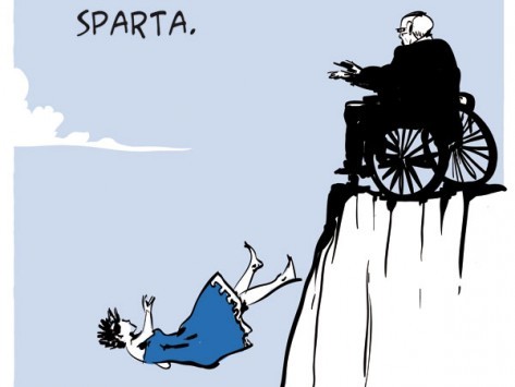 Ο Γερμανός υπουργός στην κορυφή του Ταϋγέτου σπρώχνει την Ελλάδα στον γκρεμό. Την ρίχνει στον Καιάδα όπως κάποτε οι Σπαρτιάτες έριχναν προδότες, εγκληματίες και αιχμαλώτους. Ή τα ασθενικά παιδιά, όπως μας έμαθαν στο σχολείο.