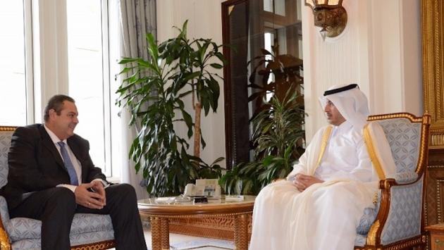 Ο Υπουργός Εθνικής Άμυνας Πάνος Καμμένος, στο πλαίσιο της επίσημης επίσκεψης που πραγματοποιεί στο Κατάρ, επισκέφθηκε την Αεροπορική Βάση του Εμιράτου, όπου συναντήθηκε με τον Αρχηγό της Πολεμικής Αεροπορίας του Κατάρ Υποπτέραρχο Mubarak bin Mohamed al-Kumait al-Khayarin.